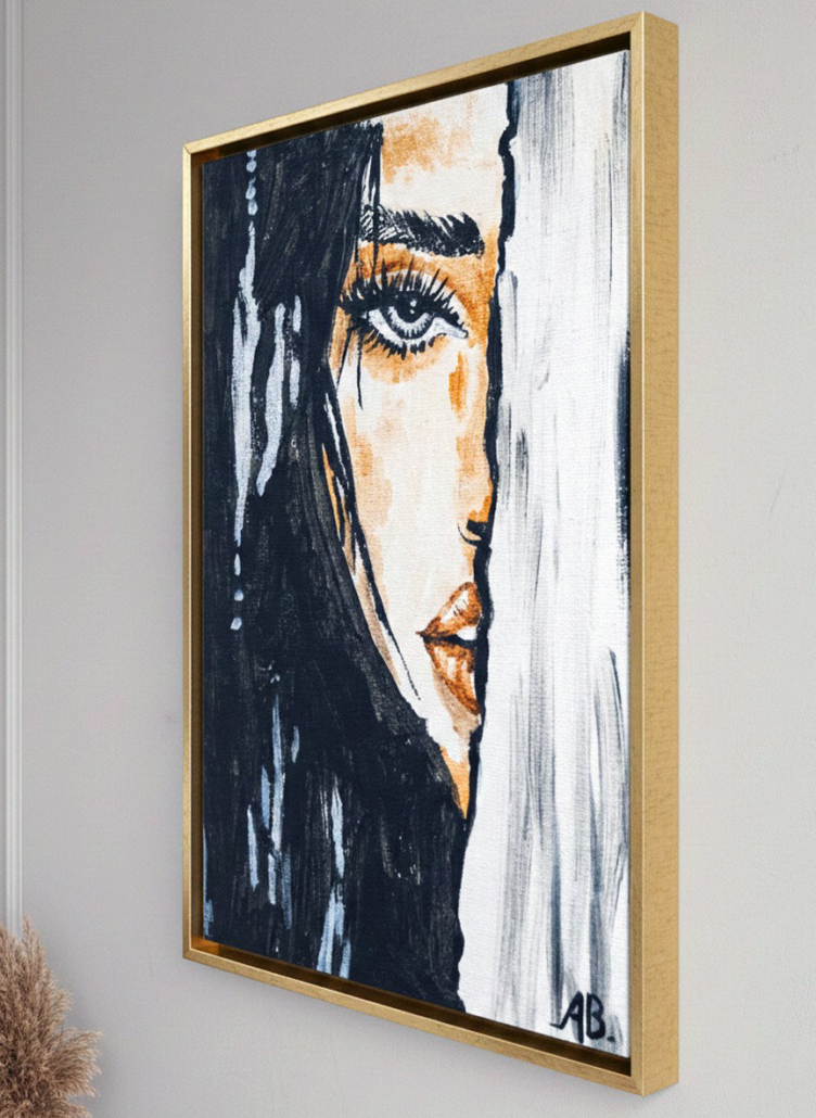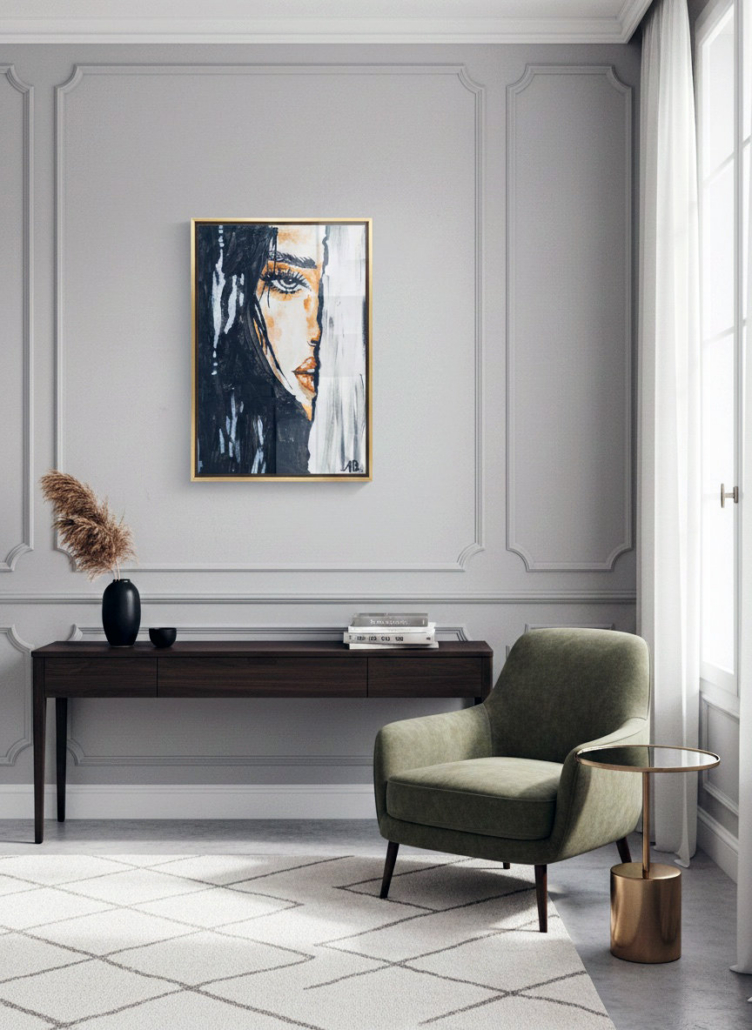 Ogni linea, una storia di intenso vissuto, incisa non dal dolore, ma da un’esperienza profonda che ha lasciato il segno. L’occhio, un vortice di miele e inchiostro, non guarda, ma scruta, attraendo lo spettatore in un enigma. La sua espressione, una pura fame di sapere.